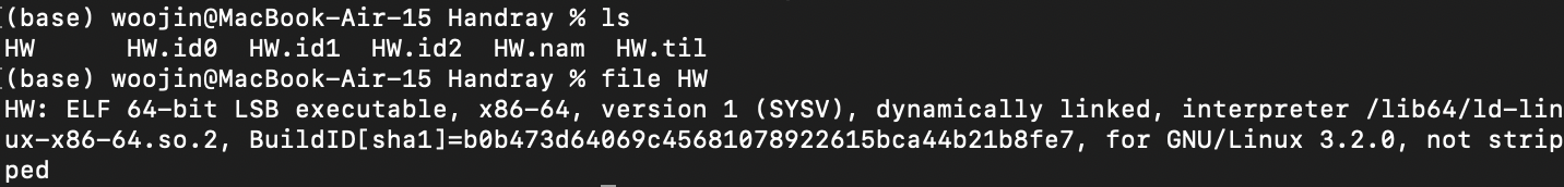 첫 번째로 Handray 폴더 안에 있는 HW file을 IDA로 열어본다.