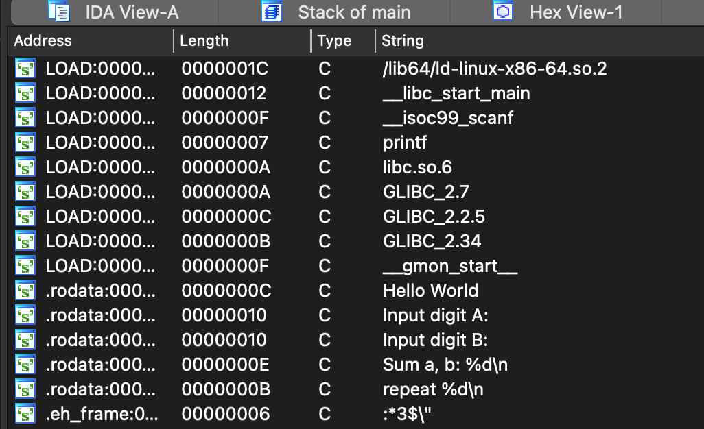 위 사진에서도 확인할 수 있듯이 Hello World, Input digit A: 등등 문자열의 입출력과 관련이 있음을 확인할 수 있다.